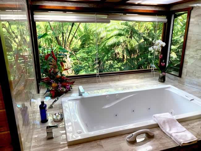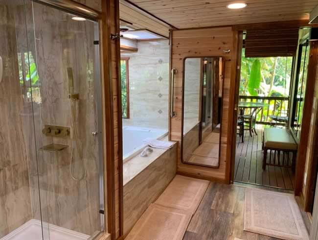 NEW! Stunning Private Luxury Jet Tub & Shower with Forest Views